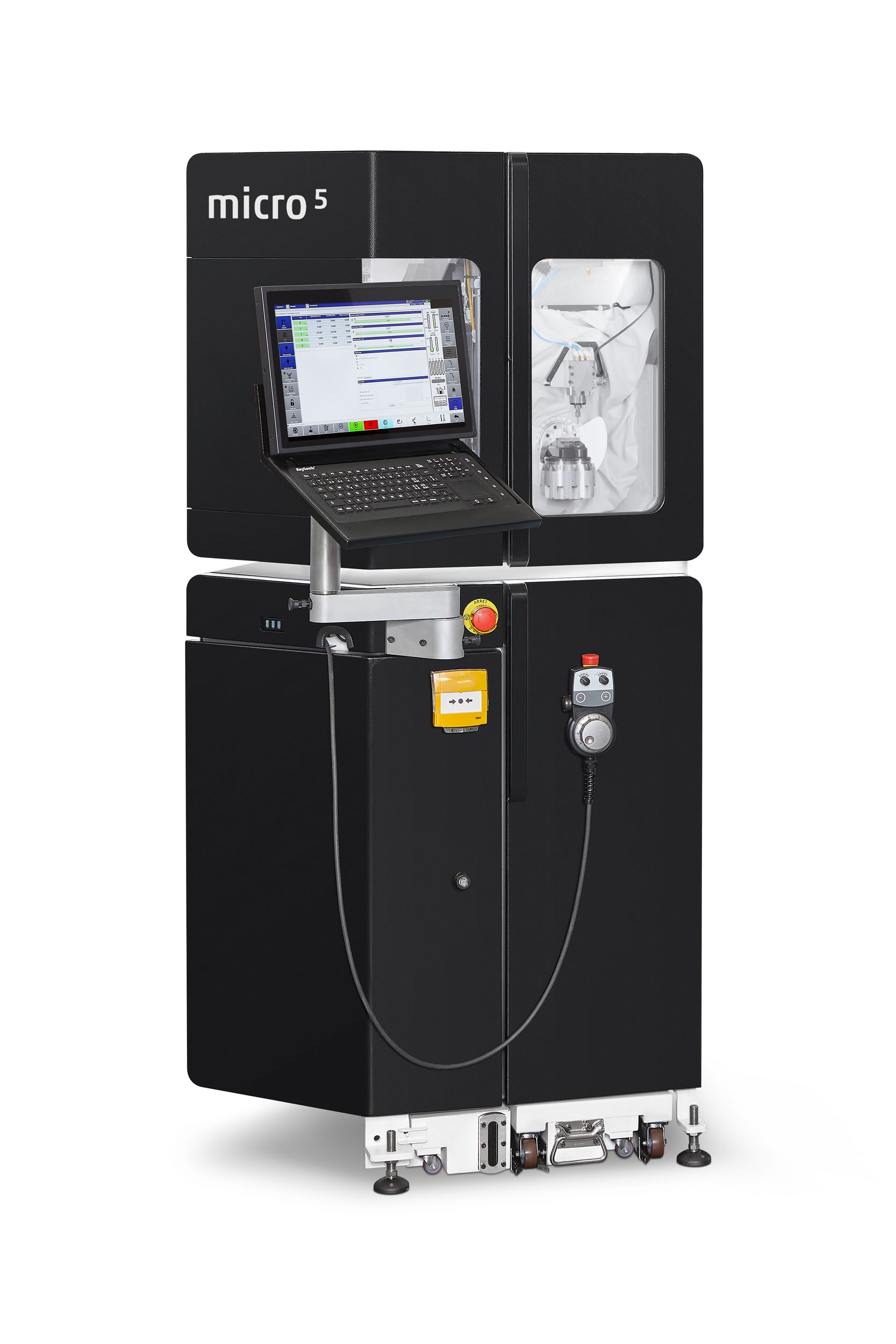 For greater productivity and autonomy in series production, the Micro5 can be combined with the Variocell UNO handling system. It loads and unloads up to two machines, manages automated handling of workpieces and tools, and accommodates up to ten pallets. Tool changes take less than five seconds.