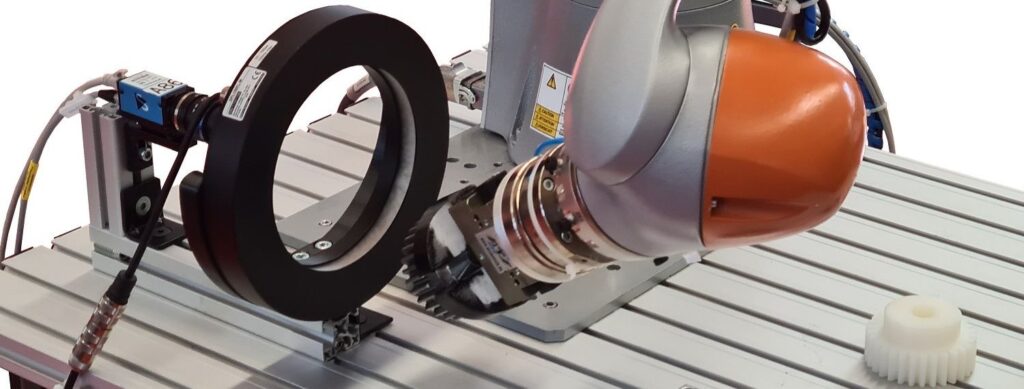 At the Hannover Messe, the project partners demonstrate what they have achieved as yet. An individual image taken in 2D with industrial camera technology (“One-Shot Demonstration”) of the component and little computing power are sufficient for the robot to pick up, inspect, and position this component as desired. The software Xeidana®, developed at Fraunhofer IWU, verifies whether the robot has picked up the correct component. Guests at the booth can try it out themselves: They place a gear at any point on a table in the workspace of a collaborative robot (a robot designed for collaboration with people). Based on the image information, the software determines the positions of all objects relative to the robot, calculates the robot’s path, and determines the gripping position. The robot then picks up the gear, and inspects it, relying entirely on the image information. This is where real-time evaluation of force data comes into play, guiding the robot on how to fit the picked-up gear into a second gear, using a smart application of AI that mimics human touch. A digital twin additionally visualizes all real actions of the robot. Visitors can also experience the assembly and integrated quality control application live.